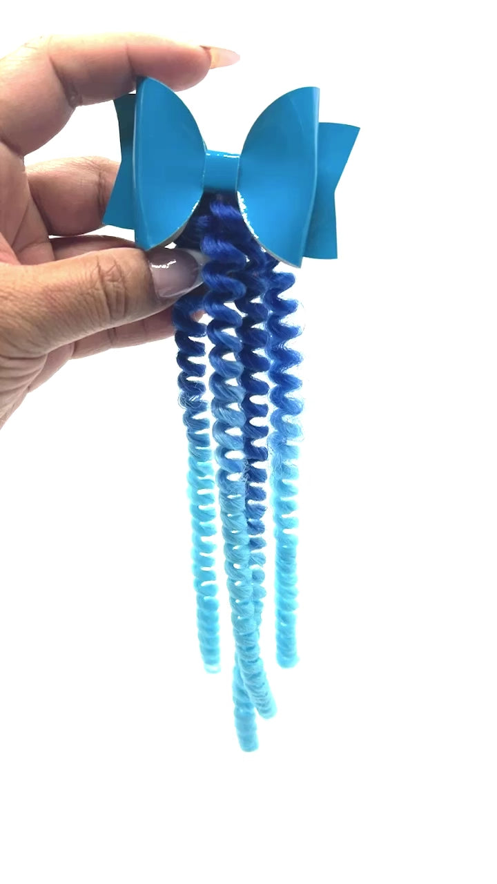 Be bold in our BlueBerry CoilyClip™! Featuring soft and bouncy, synthetic coily hair, attached to a sleek, shiny bow, with two-color ombre effect: