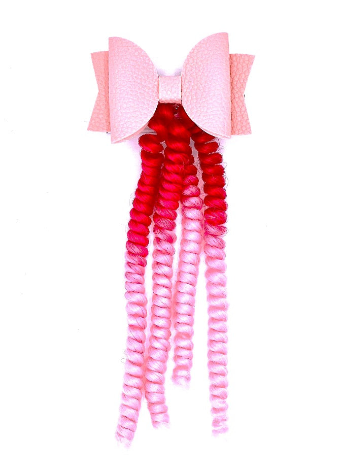 Stand out with the CottonCandy CoilyClip™! Featuring soft and bouncy, synthetic coily hair, attached to a coral pink matte bow, with two-color ombre effect: