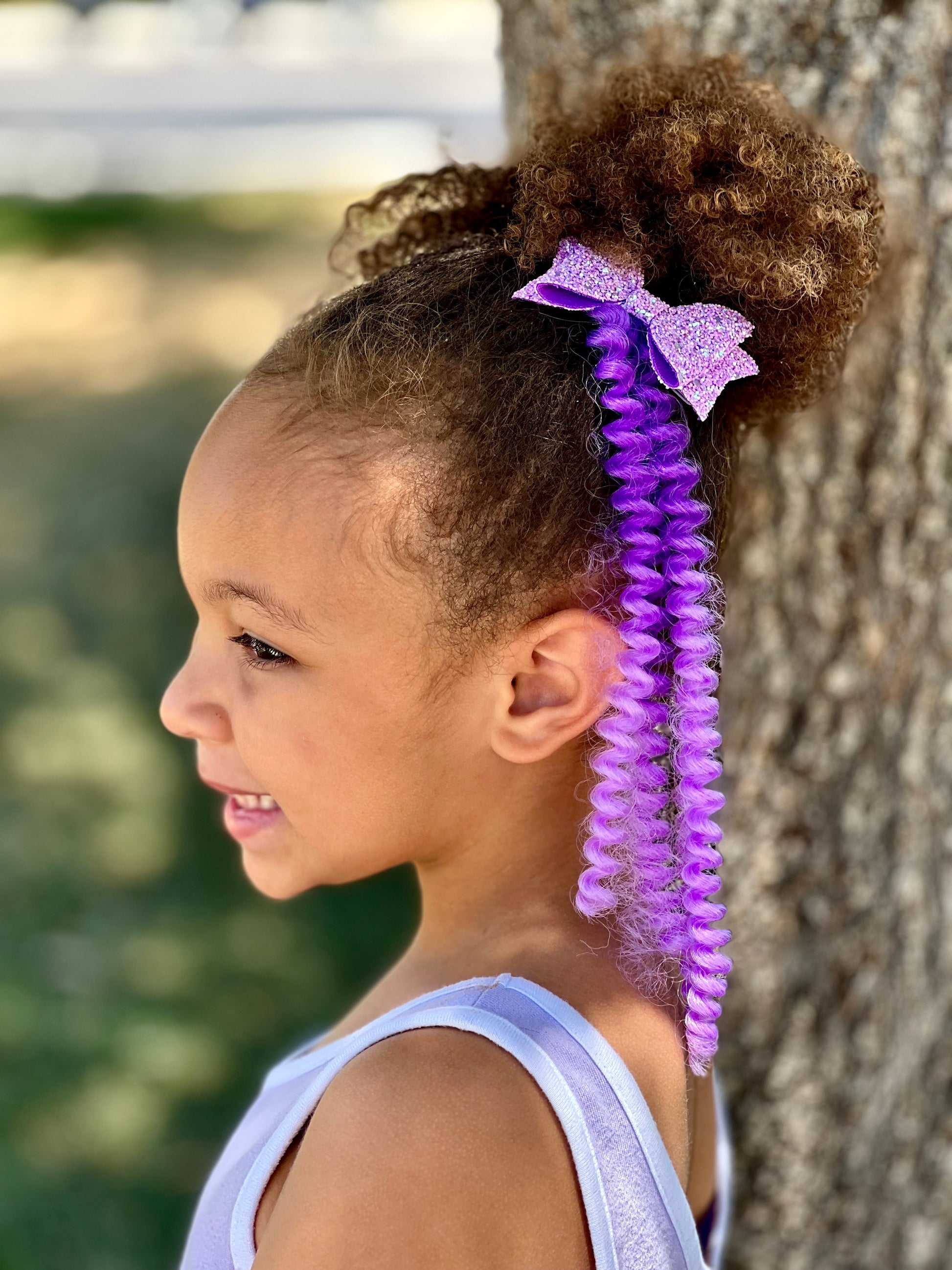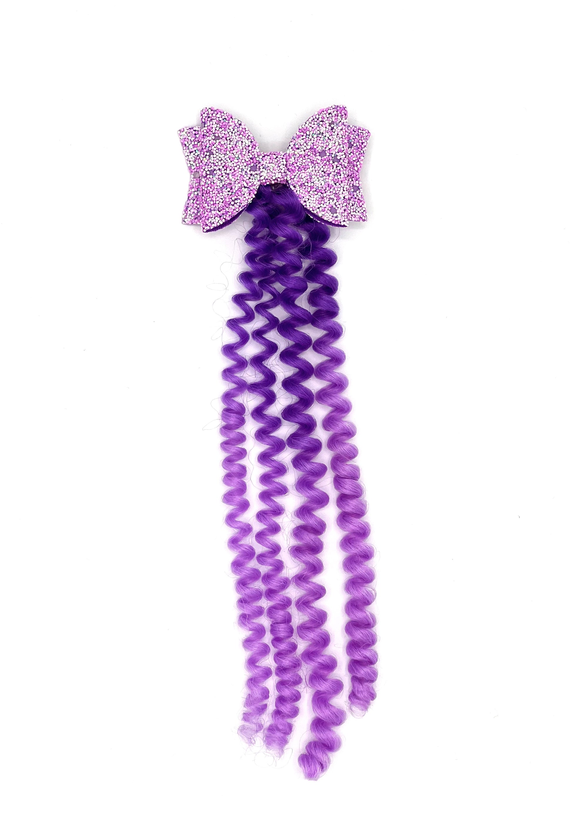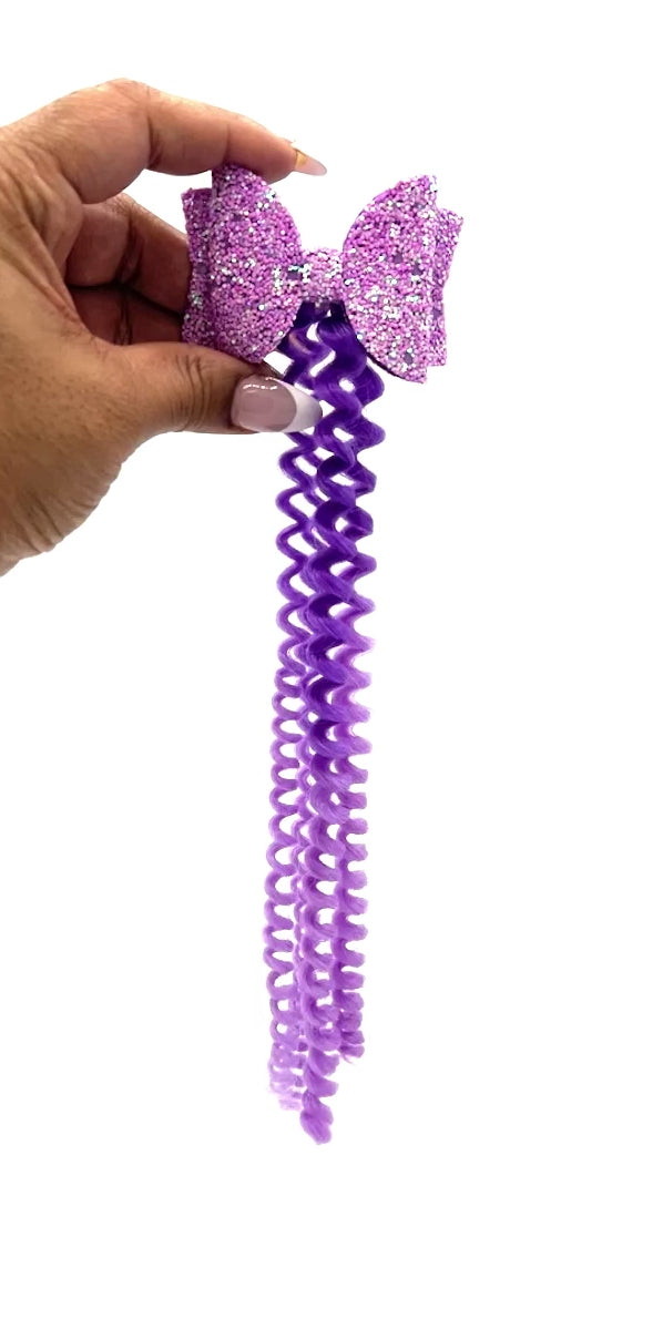 Sparkle & shine with the FairyDust CoilyClip™! Featuring soft and bouncy, synthetic coily hair, attached to a high quality fabric bow, with two-color ombre effect, and an extra special touch!